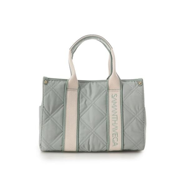 ◇SAMANTHAVEGA(サマンサベガ)のロゴテープキルティングハンドバッグ(小)大人気ロゴテープキルティングのシリーズより、カラーをアップデートした新色のシリーズが登場。サイズ感、BOX型のフォルムで実用性も抜群!こだわり満載のハンドバッグ。▽デザイン・キルティング×キャンバスのおしゃれで可愛い組み合わせ。・こだわりのキルティング加工で、女性らしい柔らかい印象に仕上げました◎・相性のいいバイカラーで、甘すぎずおしゃれにコーデを仕上げてくれます。▽機能性・気分に合わせて斜め掛けにできるショルダー付き◎・内装にもこだわり細かなアイテムを収納できるポケットが2か所あり、整理整頓しやすい作りに!・手持ち部分は、同色の合皮素材を使用。持ちやすさを追求。【対応しているもの】・折財布・ペットボトル/横向き(300ml)