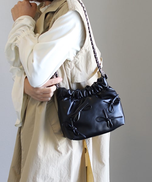 トレンドのリボンモチーフをあしらったチェーンバッグ。