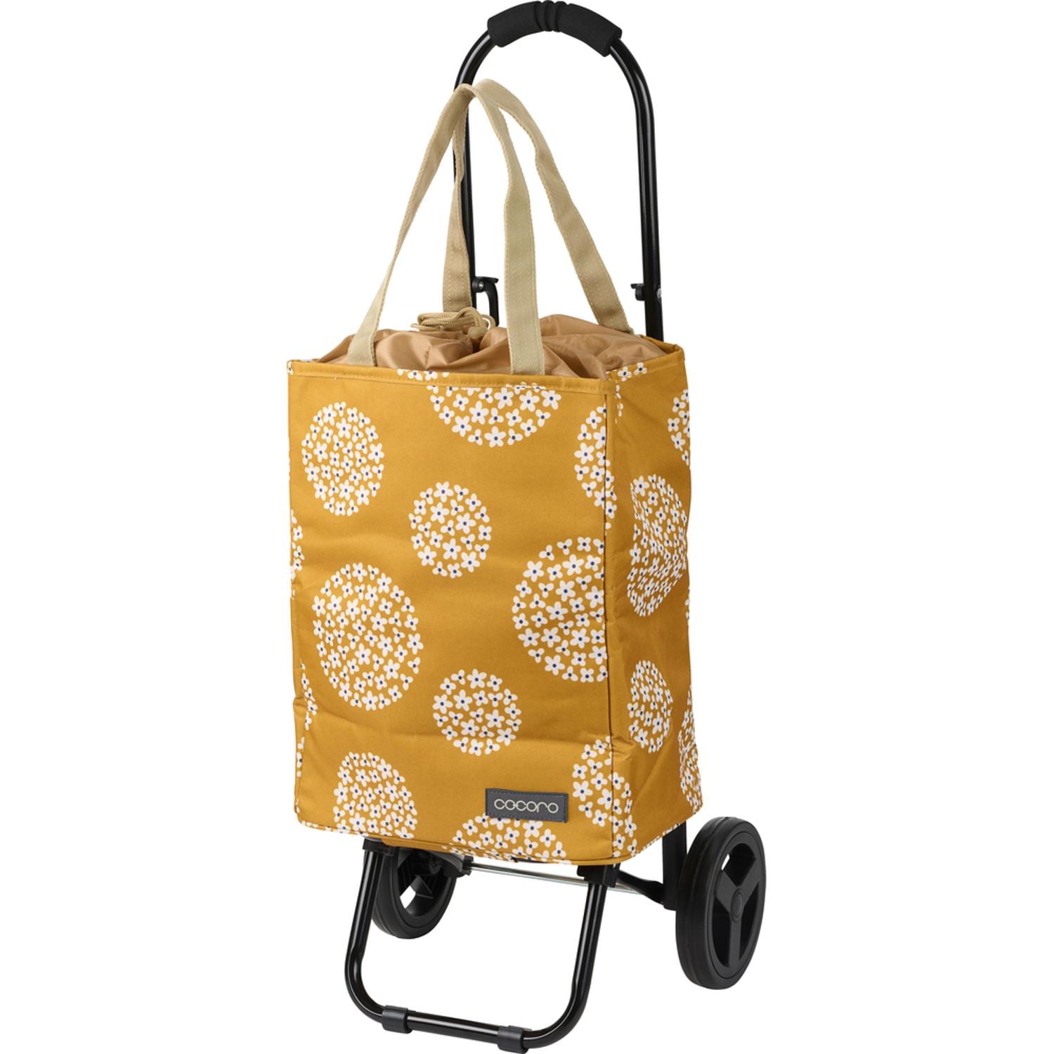 ・カートのようなコロコロ付きトートバッグcocoroは、巾着トートにコロコロが付いたバッグで、花がデザインされた新柄登場