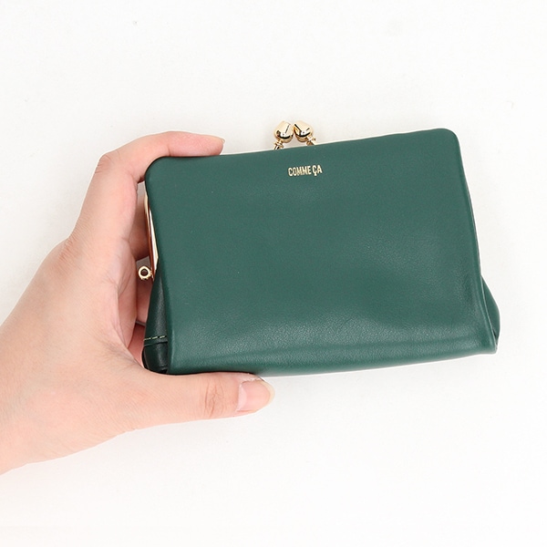仕様は袋縫いのふんわりしたデザインがマッチした、気分があがるがま口折財布。