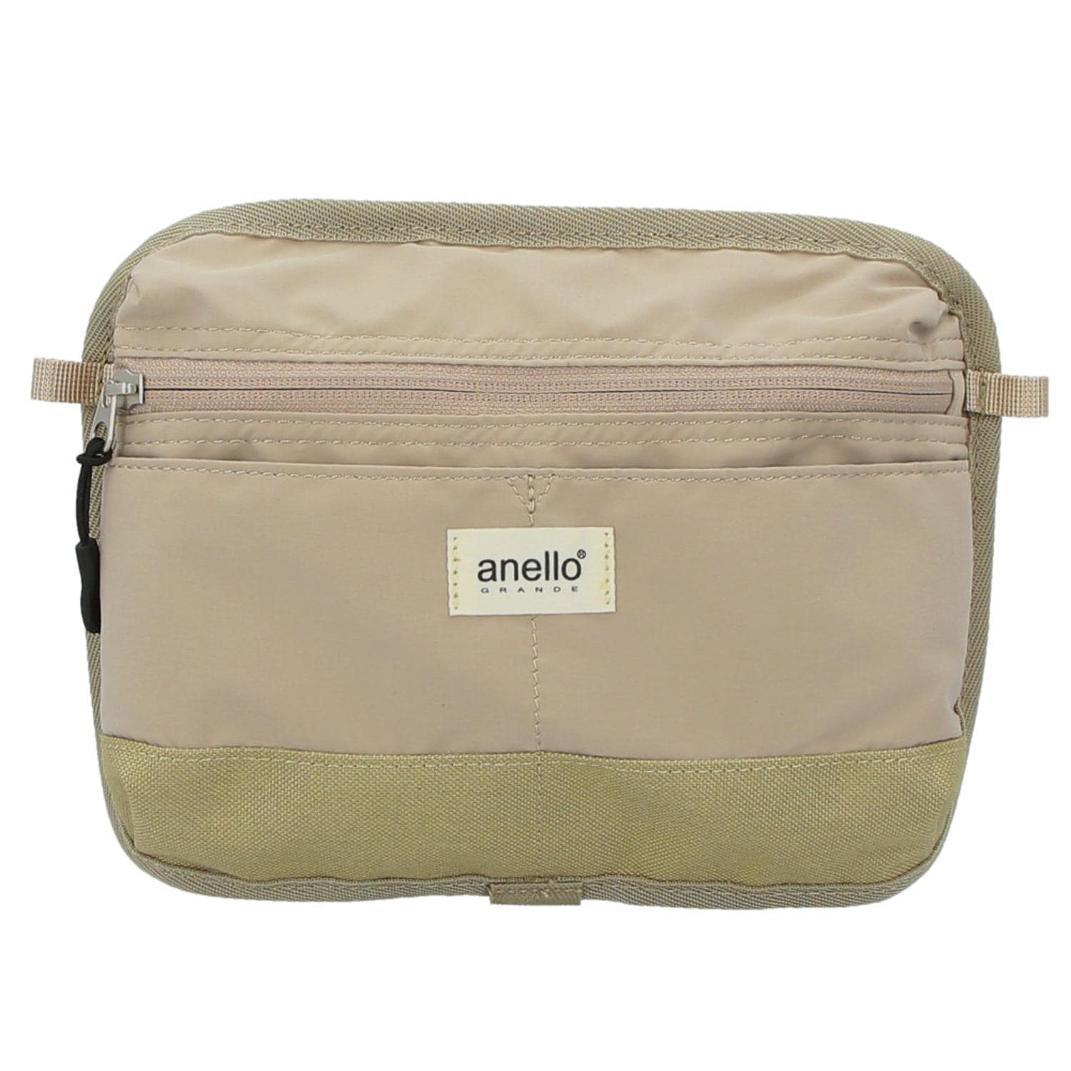 ミニマルな持ち物で、すっきり身軽にお出掛け!大人気anelloGRANDEの「みがるミニショルダー」が新登場!スマホや二つ折り財布など、最小限の小物がコンパクトにまとまる「みがる-身軽-シリーズ」の新作ショルダー。ふんわり軽く肩に掛けられるサコッシュスタイルで、身体に優しく寄り添う柔らかな生地感が使いやすさのポイント。メインファスナーにはスマホや文庫本、ハンカチや化粧小物など、普段使いの小物類がすっぽり。フロントの二つのオープンポケットは、パスケースやリップクリームなど、頻繁に使用する小物の収納に便利。ショルダー金具はバッグの背面に敢えてずらして配置し、小物の出し入れがスムーズにできる小さな工夫が嬉しい♪バッグ背面には、パスポートや貴重品が安心して収納できるセキュリティポケットも設けて、旅行用のミニショルダーにもオススメ。しっとり滑らかなはっ水ポリエステル生地に、同系色の杢調ポリキャンバス生地を合わせたシンプルな外観で、アクティブに使えるユニセックス仕様。