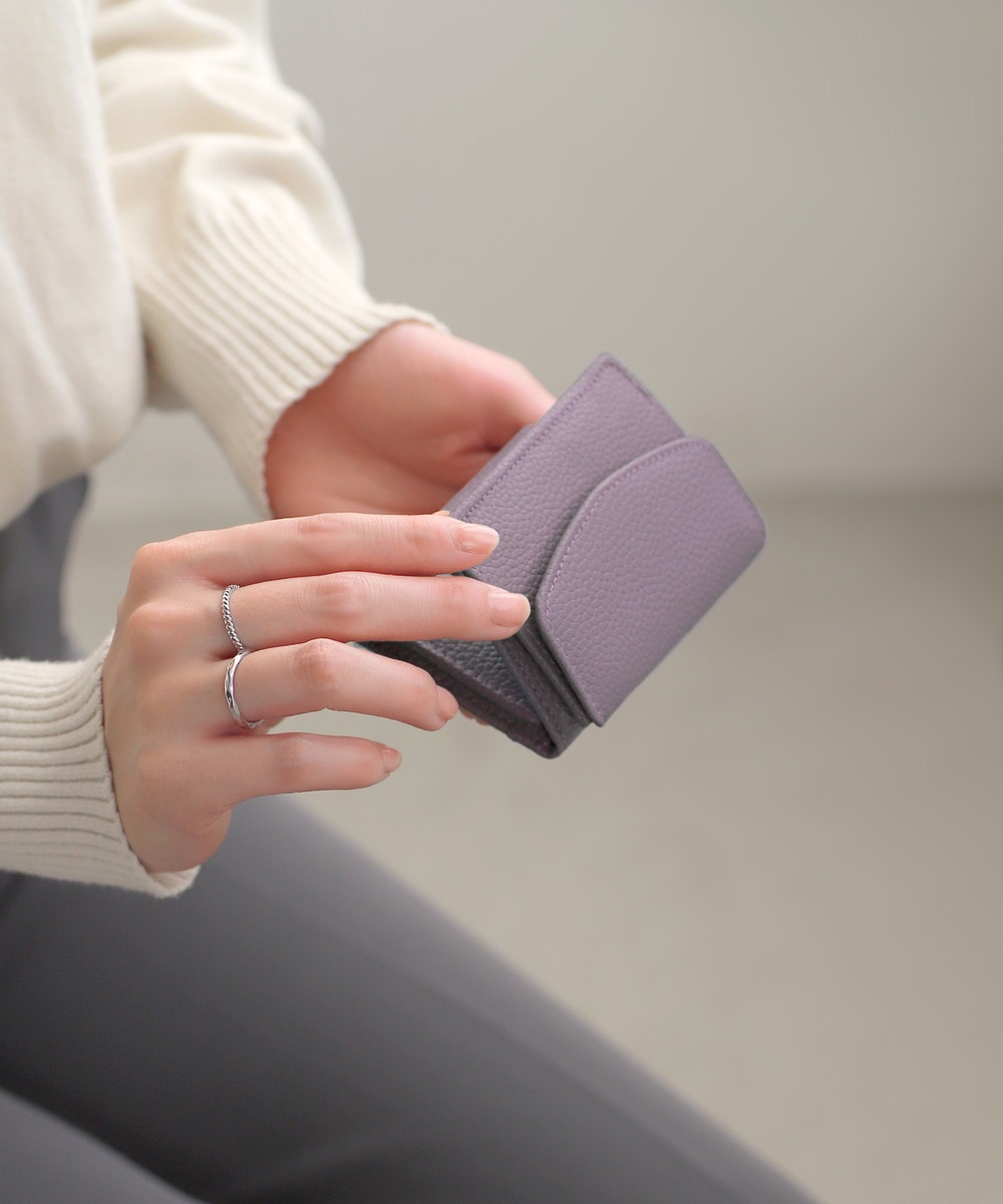 肌なじみのいい本革の質感とシンプルなデザインが、こなれた印象を与えるウォレット。