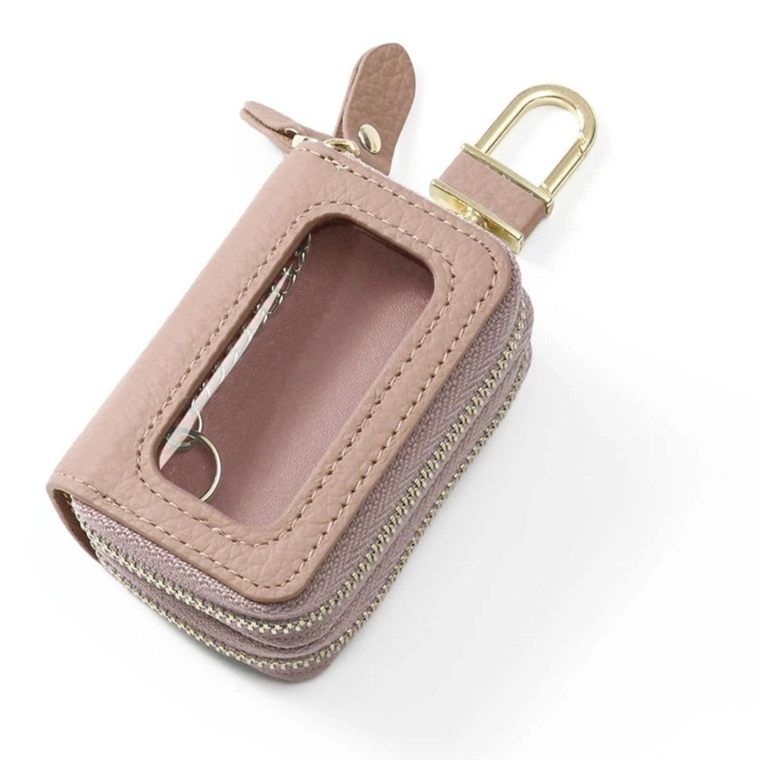 【ミニマルで使いやすい】装飾が少ないミニマルデザインでスマートに使える☆クリア窓つきWルームキーケースが発売!【洗練されたシンプルさ】装飾がないシンプルさがポイント。無地のナチュラルカラーで洗練されたデザイン♪【嬉しい本革製】耐久性もある本革を採用。独特なシボ感もあり高級感ある仕上がり。【鍵を仕分けて収納】・2ルームなのでお家や愛車のカギなど仕分けて収納できるのもGOOD。【スマートキーを入れたまま操作】片面はクリア窓仕様なので、スマートキーのボタン操作が収納したまま可能!【2ルームともスマートキーOK】マチ幅がある収納スペースなので、スマートキーなど大きな鍵もどちらも対応。【開閉しやすいファスナー】ファスナーはラウンドファスナーを採用し、鍵の取り出しがスムーズに。【ポケットやミニバッグにIN】コンパクトな作りなので、アウターなどのポケットやミニバッグに収納OK。【ループやカバンの持ち手に】ケースの上部にはカラビナが付いておりベルトループやカバンの持ち手から下げるのもOK。【Blanc Pomme】リンゴの花言葉である「最も美しい女性へ」からの由来。エレガントでスマートなアイテム。(※)Blancは「白い」、Pomme は「リンゴの木」をを意味する言葉です。【機能仕様】キーリング×2(各ルームに1つずつ)、クリア窓付きルーム×1(片面のみ)