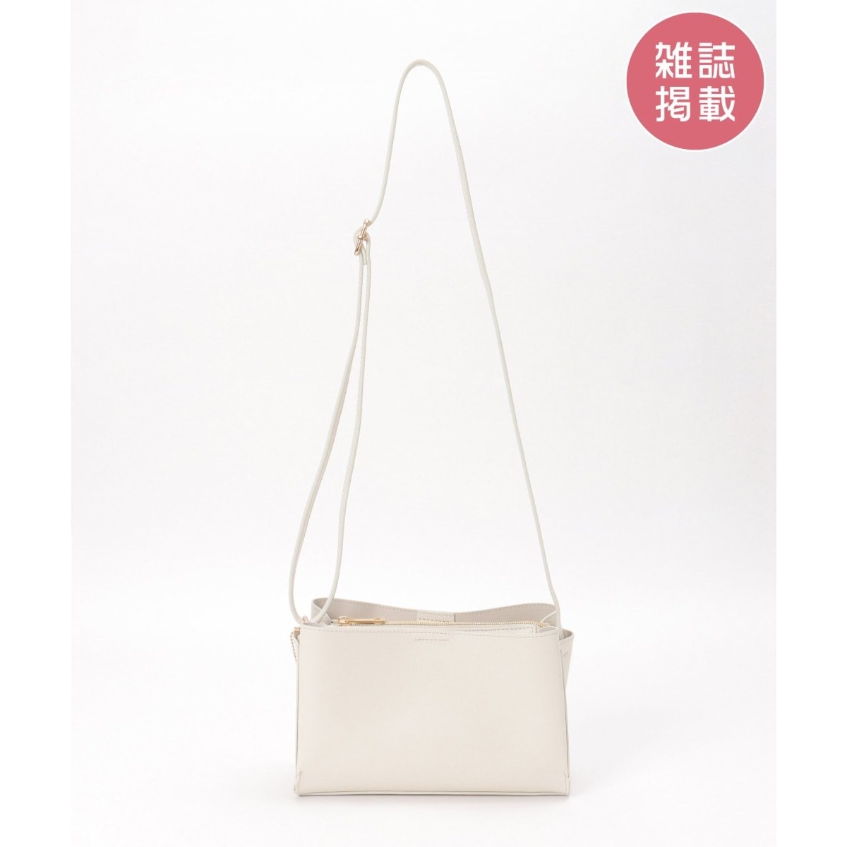 両面にポケットが付いた3層構造のミニショルダーバッグ。