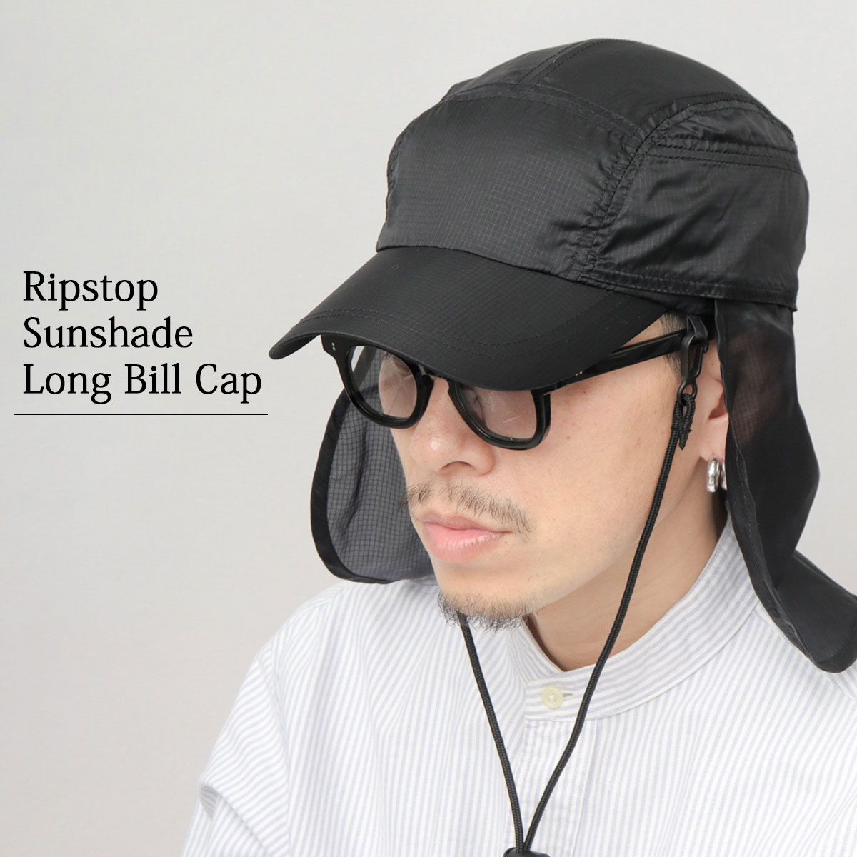 7パネルデザインのやや浅めのクラウンに、後部に配置されたサンシールドがアウトドアシーンを彷彿とさせる、ロングビルキャップ。首元をしっかり覆えるサンシールド、フィット感を調節できるあご紐、軽量ながら強度の高いリップストップ生地など、日差しの強い日にぴったりのアイテムに。リップストップ生地は、柔らかく、程よい透け感のあるものを使用した、さらっと涼しげな表情。長めのカーブバイザーがしっかり日差しをカットしてくれるので安心◎アウトドア・キャンプはもちろん、フェスに!遊びに!春夏のアクティブシーンにオススメ◎