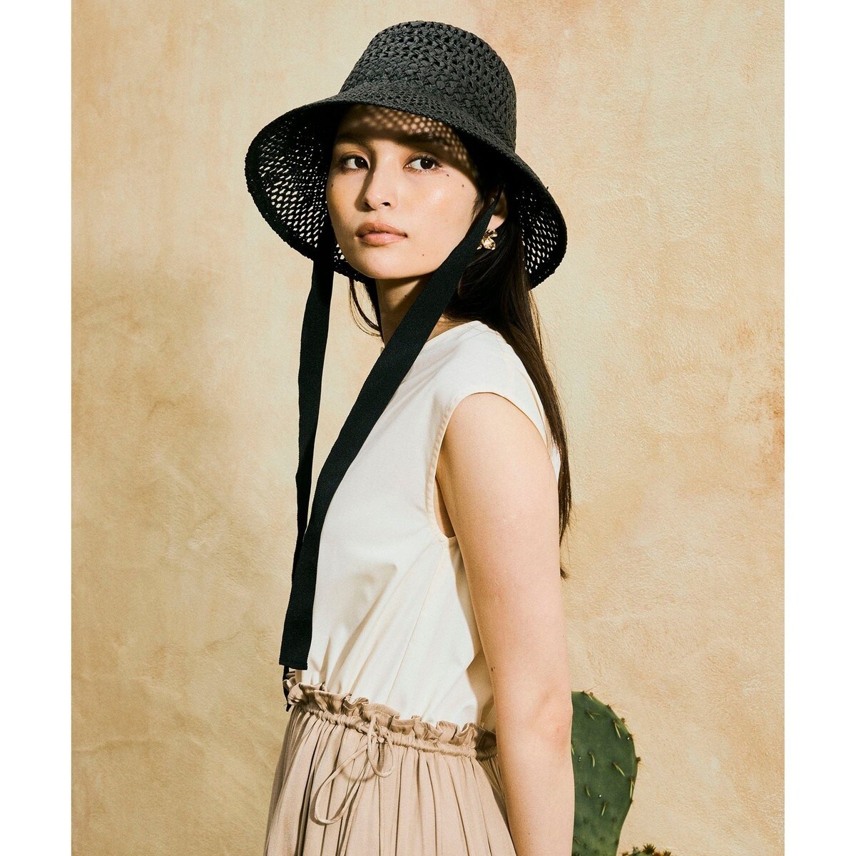 少し高めのクラウンに透け感のある編み方が特徴的なデザイン。