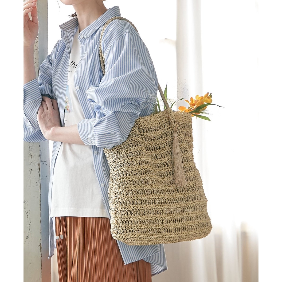 ペーパーとポリプロピレン糸を引き揃えた涼しげな素材のトートバッグ。