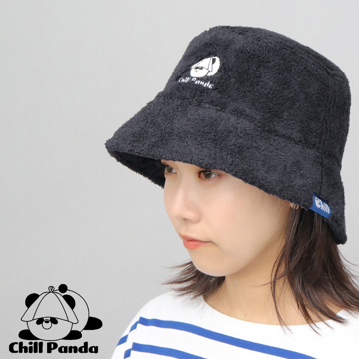 ボーダー タオル生地 サウナハット グレー パイル素材 帽子 クマ サウナキャップ バスタオル ととのう サ活 サ道 レディース