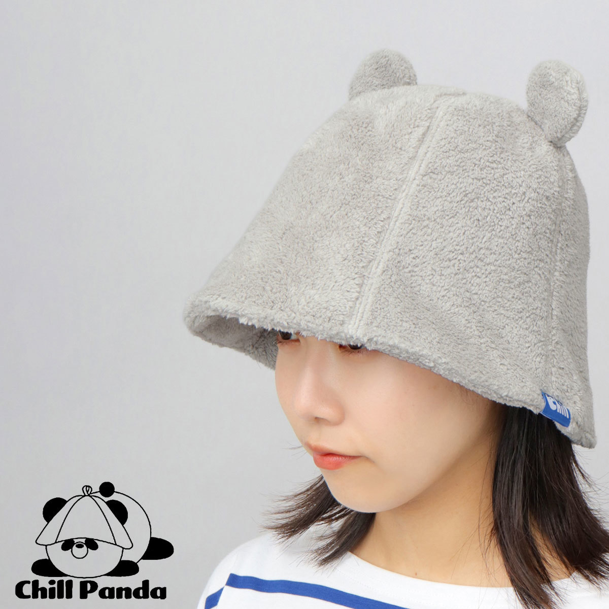 ボーダー タオル生地 サウナハット グレー パイル素材 帽子 クマ サウナキャップ バスタオル ととのう サ活 サ道 レディース
