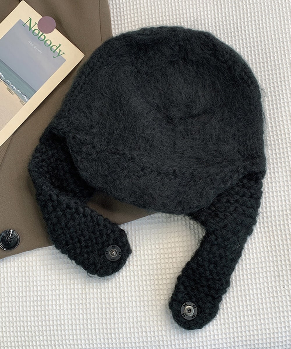 モヘア糸編みの耳あてがお洒落で可愛いニットフライトキャップです。 スナップボタン付き垂れ部分を降ろすと防寒にぴったり。移動や送り迎え、ウィンターレジャーで暖かくおしゃれに。 6色のカラーバリエーションなので、秋冬の服装に合わせやすい。 耳当てがスタイリングのポイントになってくれるニットキャップ。暖かく、カジュアルな装いにハマります。