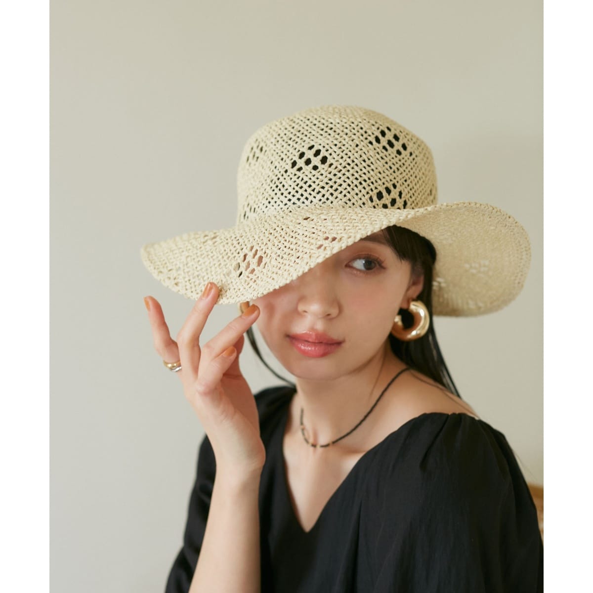 つば広雑材ハット