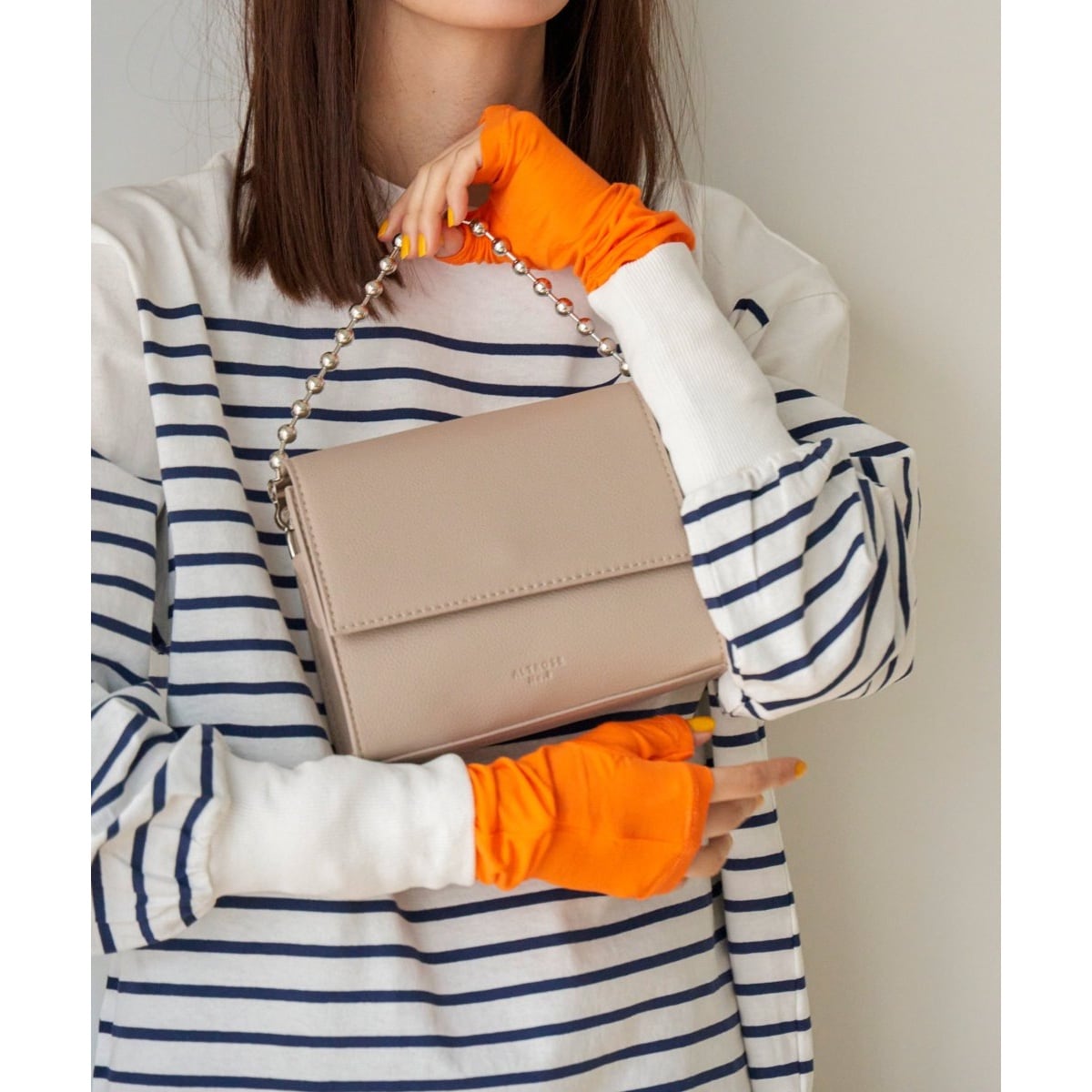 ボールチェーンのハンドルと、シンプルなショルダーストラップの2WAYで使えるバッグです。