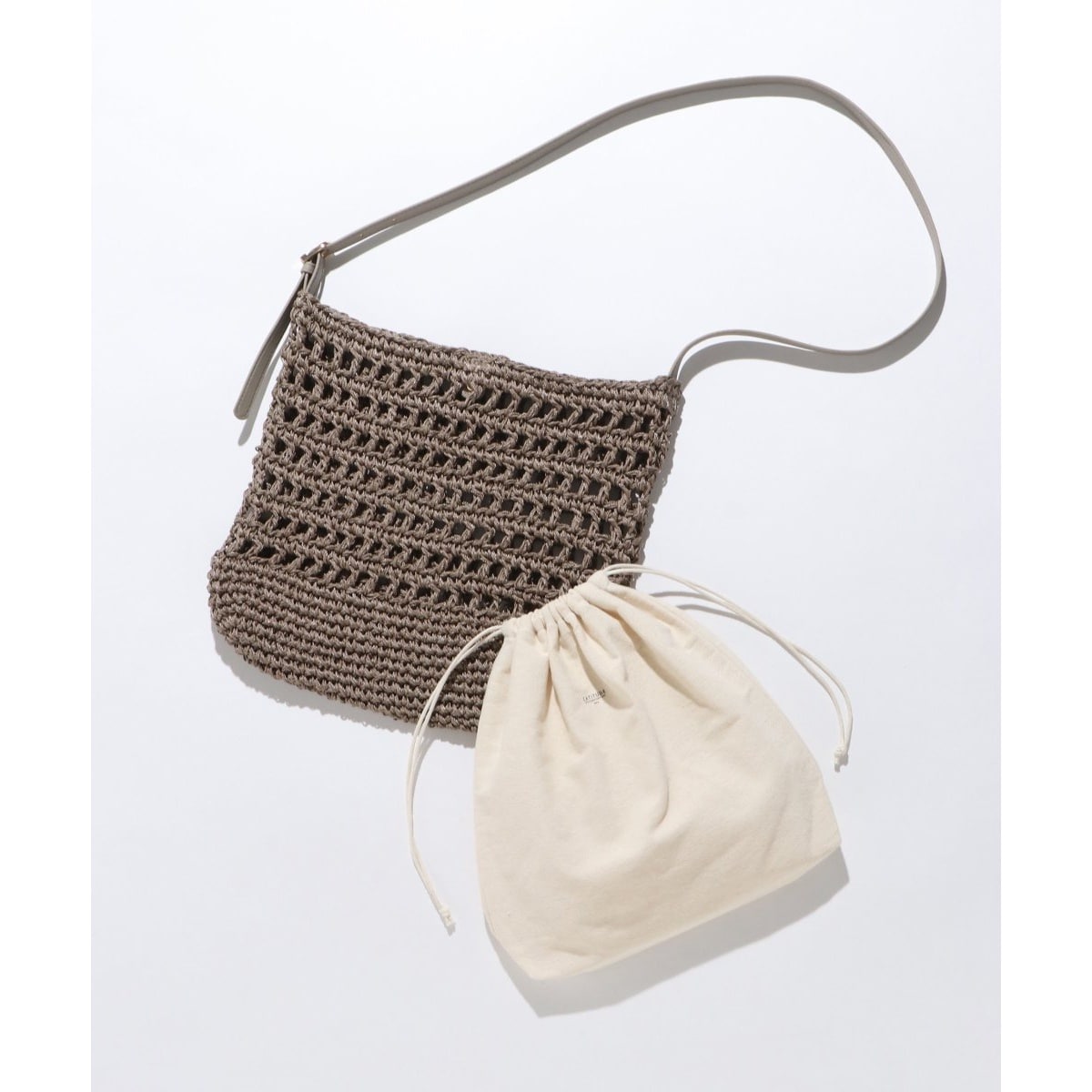 編み込み生地を使用した清涼感のあるショルダーバッグ。