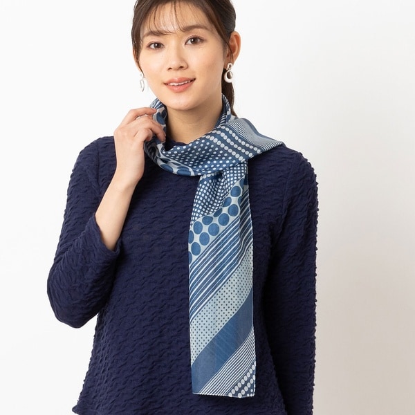 シンプルなTシャツのアクセントにしたり、ジャケットの首元に巻くだけでお洒落に決まる柄ストール。