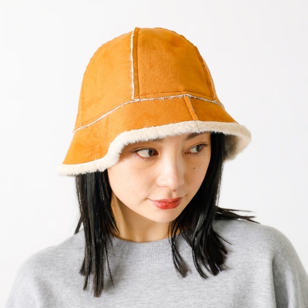 スウェード面とシャギー素材のリバーシブルハット。