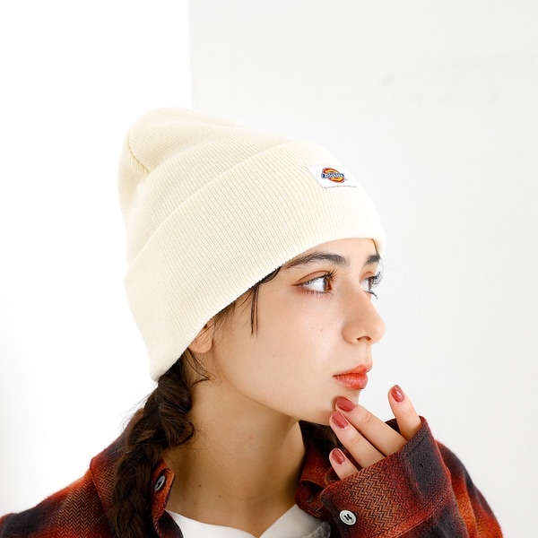 【ブランドタグが施されたシンプルなデザインのビーニー】