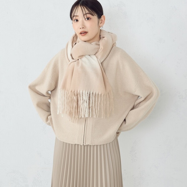 ・ぼかしたようなグラデーション柄がポイントのチェックストール。