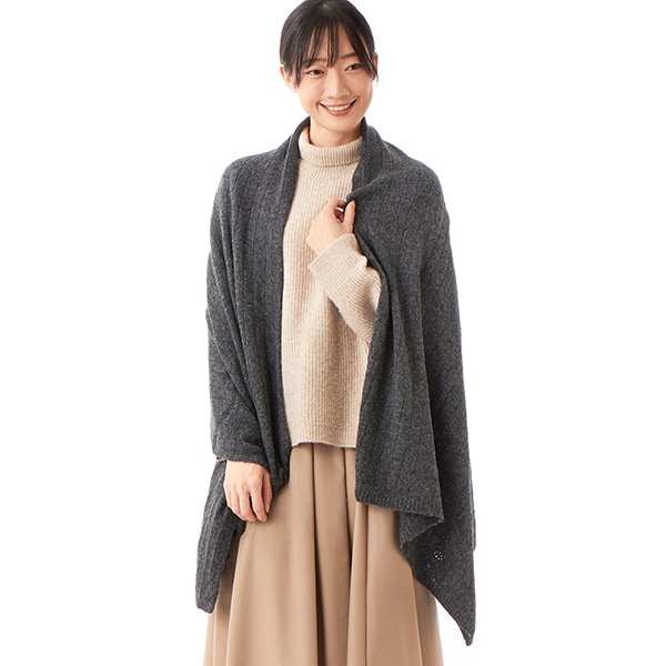ケーブル 千鳥柄ニットストール 静電気防止加工
