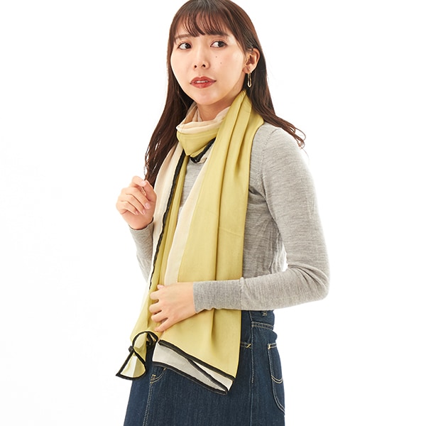 プリーツ加工コード 装飾 ブラック シフォン ストール