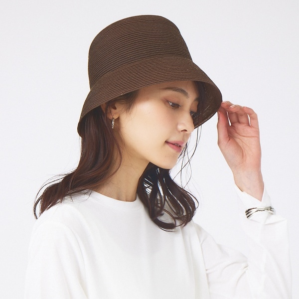 深めのハットですが、シアー感がある素材を使っているので重たくならずスタイリングにスッキリと馴染みます。