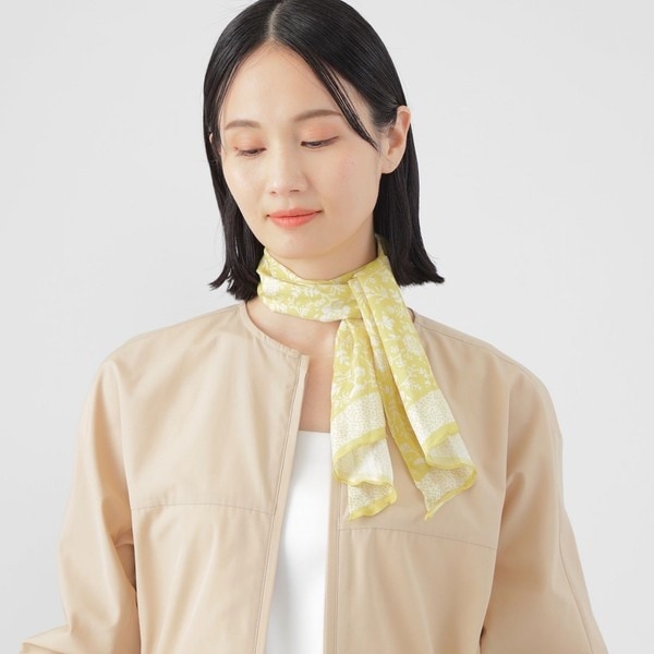 サマースカーフ グリーンフラワー 花柄 シルク調 韓国風 おしゃれ かわいい