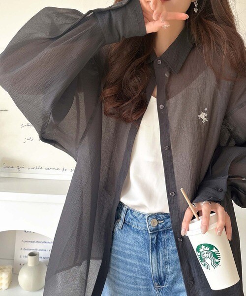 【即購入可】胸ワンポイント刺繍ビッグシアーシャツ