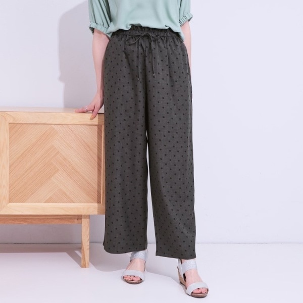 【S-LL】レースが目を惹く ジャカードイージーパンツ