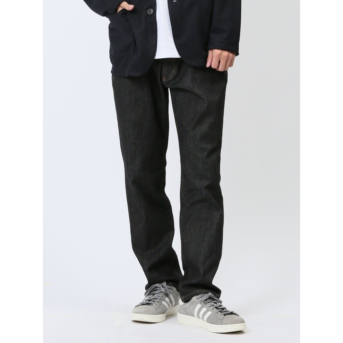 無駄のないすっきりとしたシルエットで綺麗目にアップデートしたデニムパンツです。定番のファイブポケット(フロント×2・ヒップ×2・コインポケット×1)仕様です。