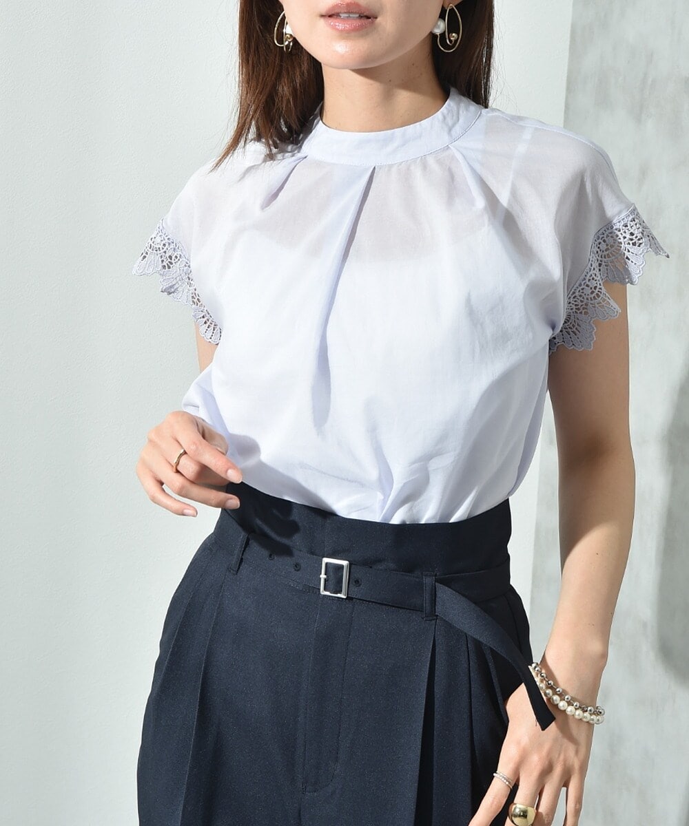 PARADIS TERRE レースコットンブラウス 白 半袖