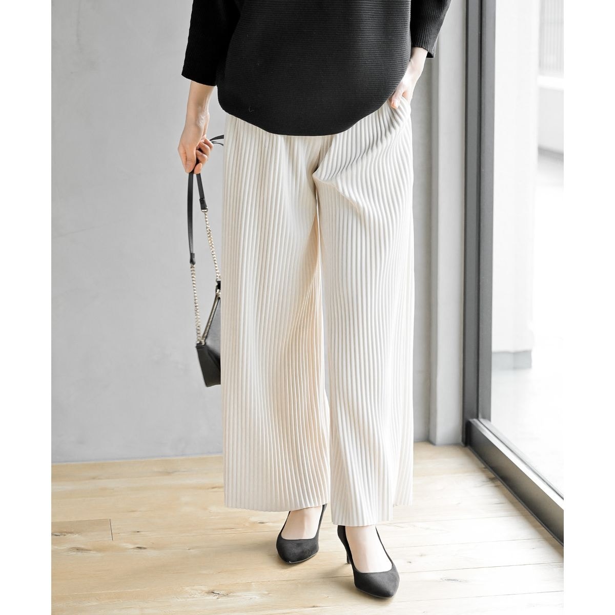 ポンチスエード細プリーツパンツ
