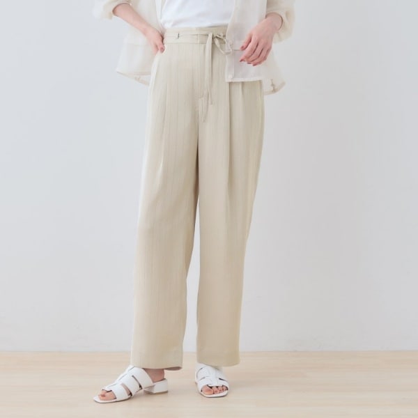 INDIVI ストライプ柄サテンテーパードパンツ 40