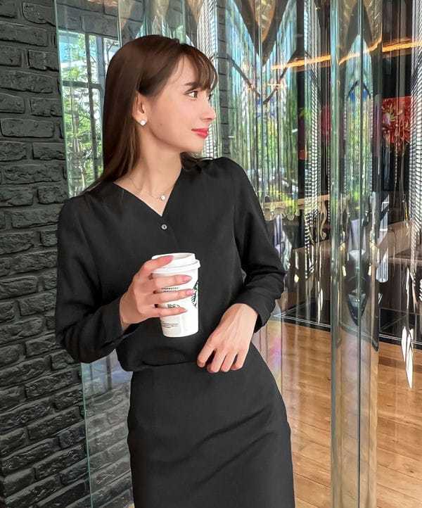 【新品】岡部あゆみさんコラボ ウエストタックワンピース ブラックS
