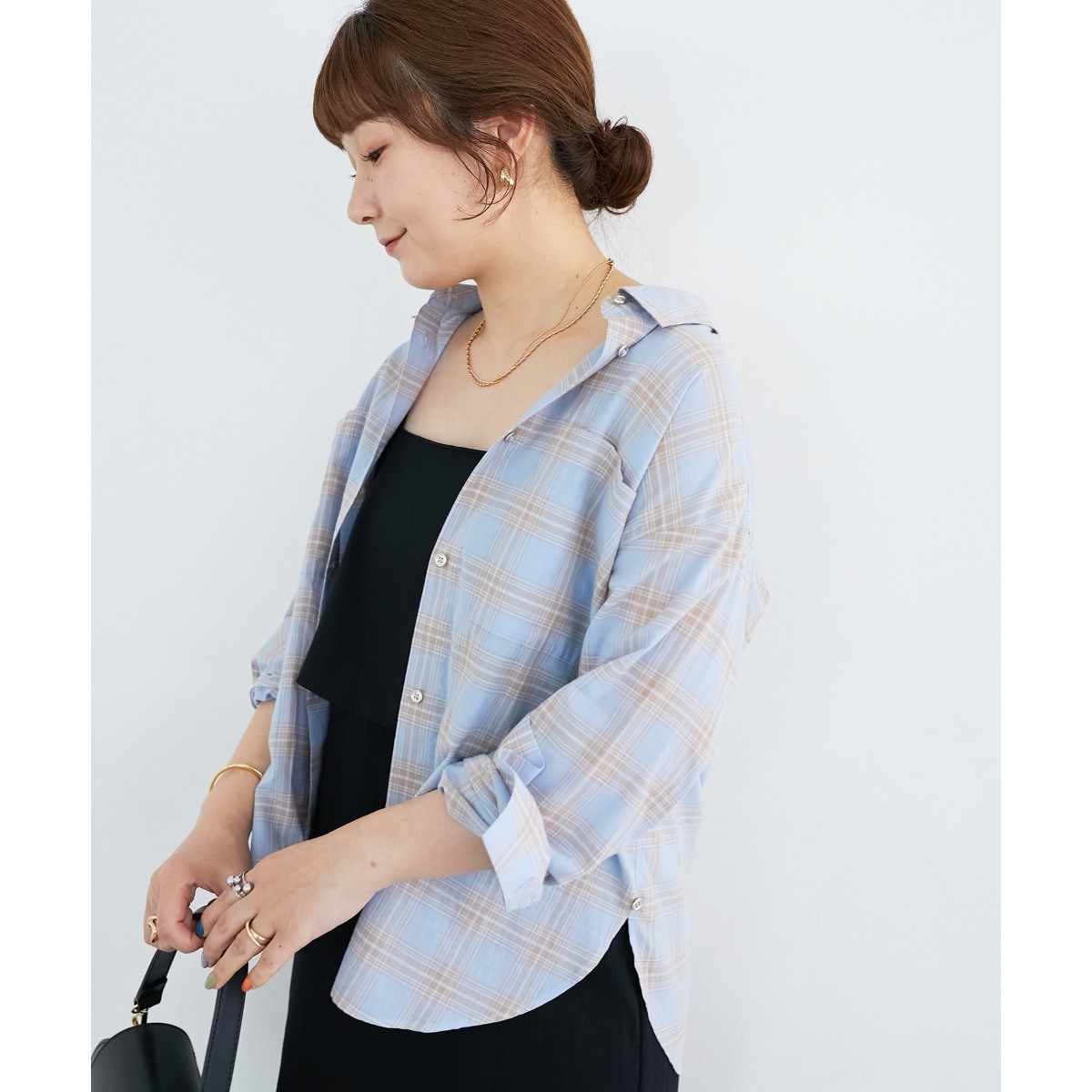 やや透け感のある柔らかな綿素材を使用した配色が魅力のシアーチェックシャツ。