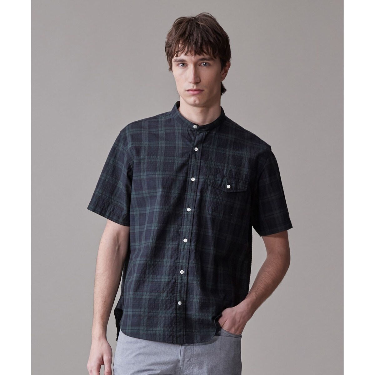 風をまとうエアリーな着心地の半袖バンドカラーシャツ■素材縦糸を等間隔で抜いて織り上げた空羽(あきは)と呼ばれる生地を使用。糸を抜いた部分と抜いていない部分でランダムな凹凸ができ、独特の軽い風合いと通気性を生み出します。見た目も柔らかく、優しい雰囲気と艶やかさ、軽やかなエアリーな着心地と佇まいを体感できるのが特徴です。糸には吸湿速乾機能をもつクールマックスポリエステル糸を使用し、更に後加工で接触冷感の機能をプラスし、夏に着たくなる着心地を実現しました。