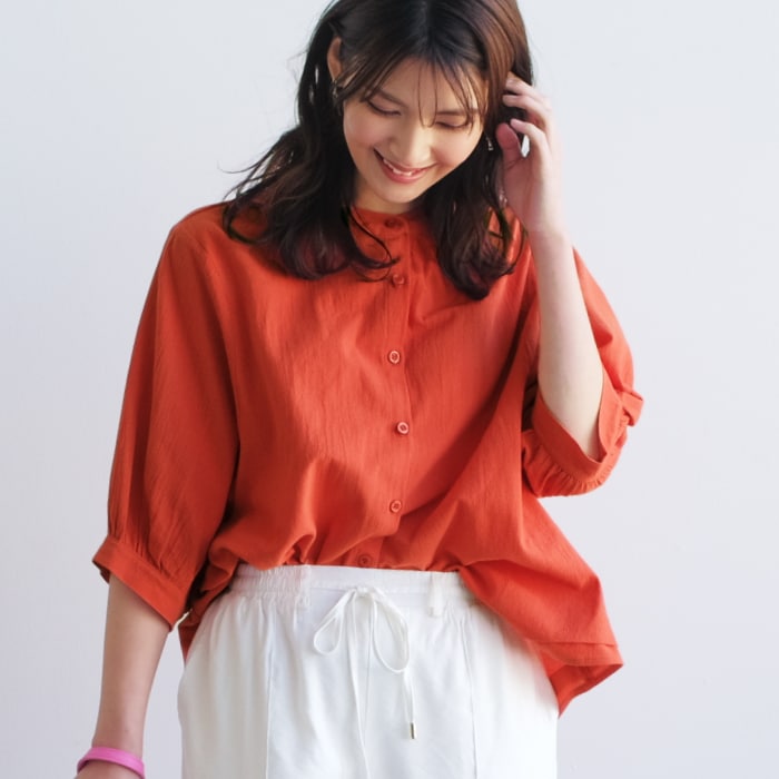 ユニクロ コットン100%ノーカラーシャツ ブラウス