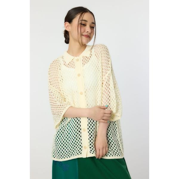 ■ポイント涼やかな編地に襟付きデザインが大人カジュアルなカーディガン。■ディティール肌触りの良い生地感もこれからの季節大活躍間違いなしです。■スタイリング透け感を活かして、キャミソールにさらっと羽織ると、ヘルシーな印象に。ボトムは、ブランドらしく王道なデニムと合わせるのがおすすめ。■生地TC素材のメッシュ編みで軽く、伸縮性に富んでいます。肌触りがドライで涼し気な素材です。編地の特性上、引っ掛かりやすくなっています。洗濯後に形を整える必要があります。■透け感:あり■光沢感:なし■伸縮性:あり■裏 地:なし[注意事項]※画像の商品はサンプルです。実際の商品と仕様、加工が若干異なる場合があります。※画像の商品は光の照射や角度、お使いのモニター環境により、実物と色味が異なる場合がございます。※着用、お取り扱いの際は、アテンションタグをご確認ください。