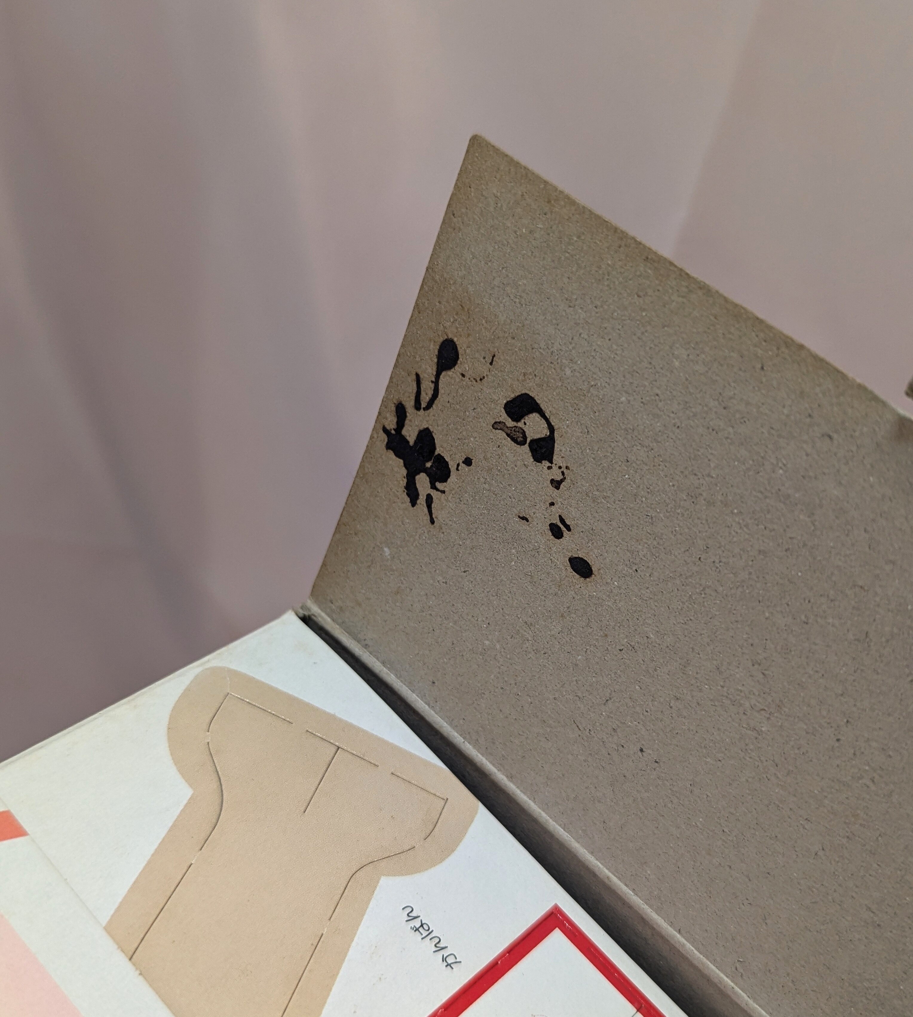 メーカーによる検品のため開封され再びテープ留めされたもの。中は未使用