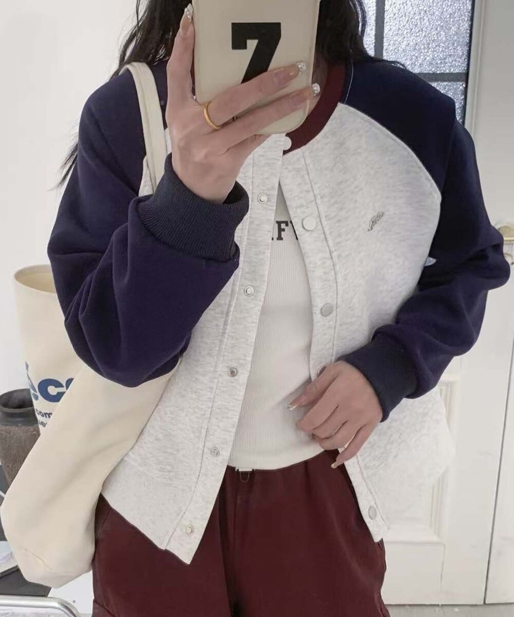 ラグランスリーブが特徴のカジュアルなボタンカーディガン。シンプルなボタンデザインと、異なる色の袖が絶妙に調和し、スタイリッシュでおしゃれ度UP。ゆったりとしたシルエットで日常使いに便利なアイテムです。
