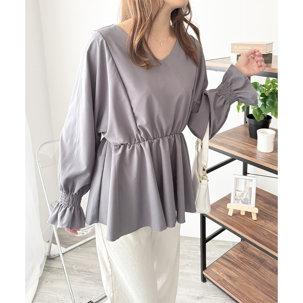 たっぷりギャザーVブラウス ギャザーブラウス