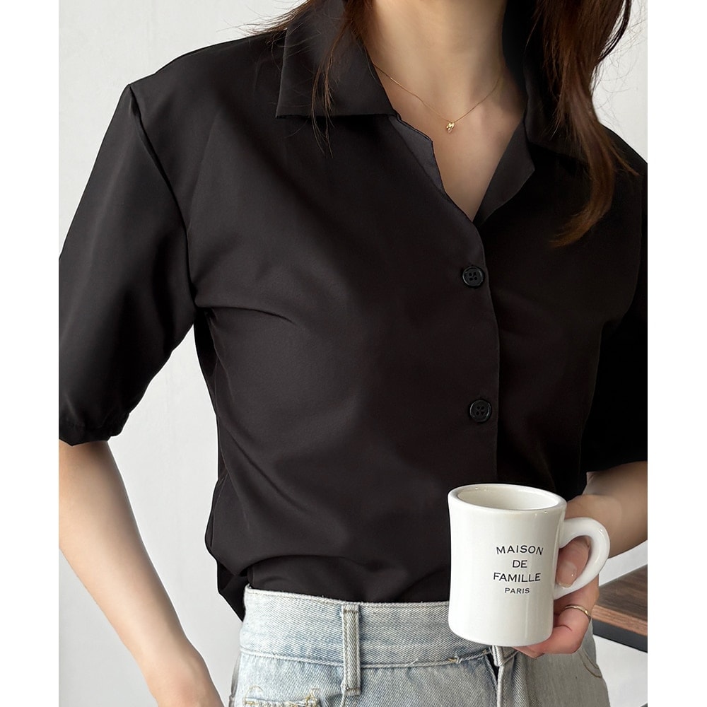 オープンカラーシャツ ブラック 半袖シャツ ビッグシルエット 無地 シンプルXL