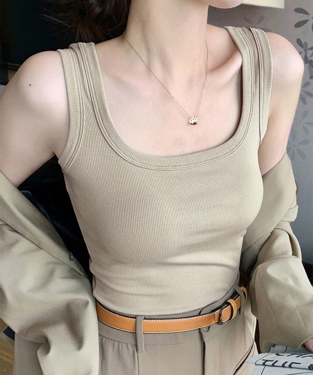 フィット感抜群のリブ素材で、美しいシルエットを演出。