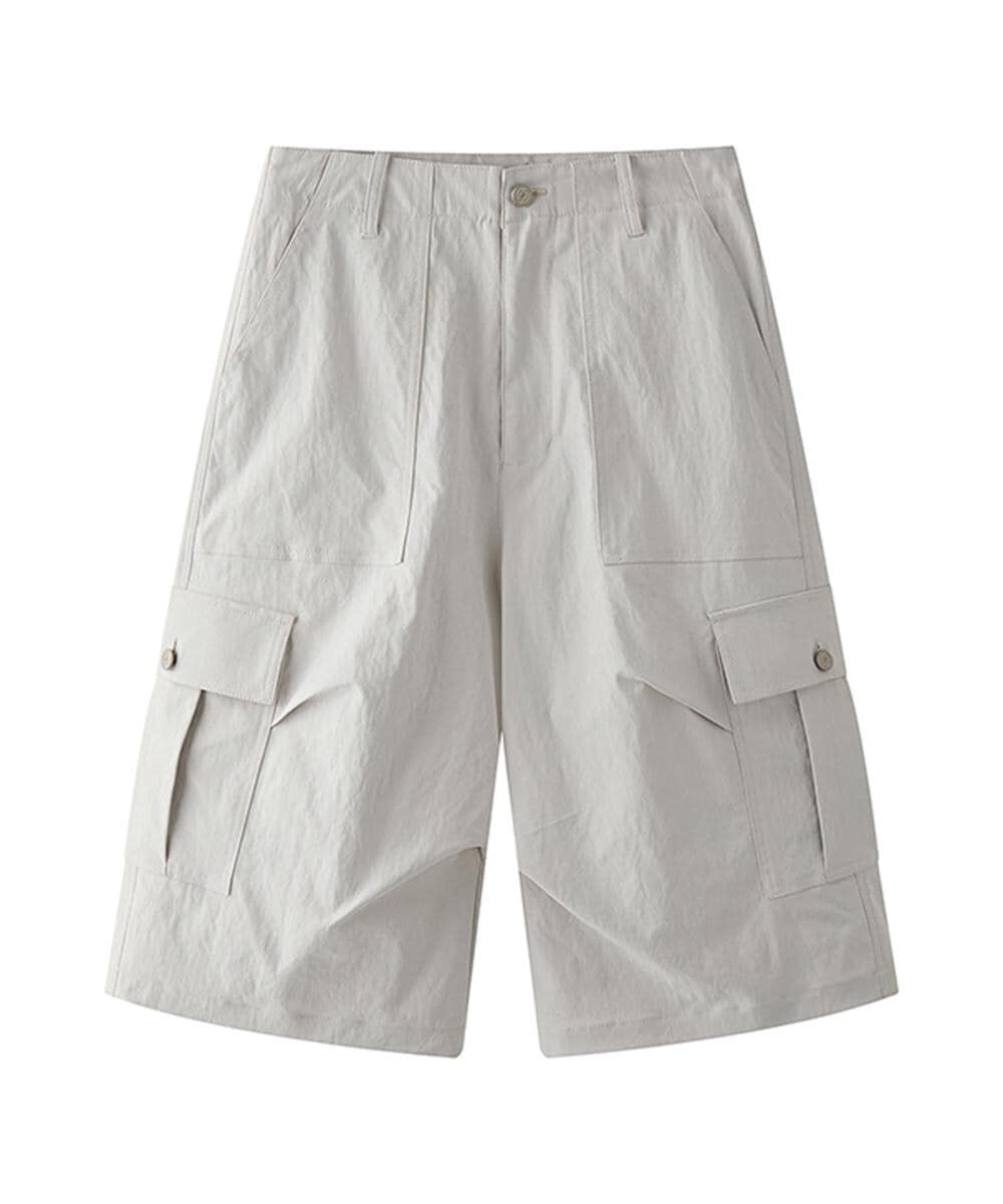 シンプルながらも存在感のあるカーゴハーフパンツ。ゆったりとしたシルエットがストリートスタイルにぴったり。両サイドの大きめポケットがデザインのアクセントとなり、機能性も兼ね備えた一枚。軽量で快適な履き心地なので、デイリー使いに最適。