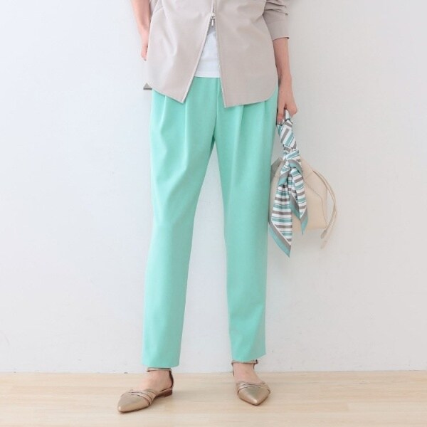 【褒められパンツ/高ストレッチ】タックテーパードパンツ