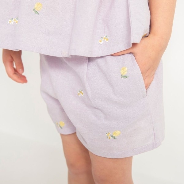 【おそろい】レモン&フラワー総柄刺しゅうハーフパンツ