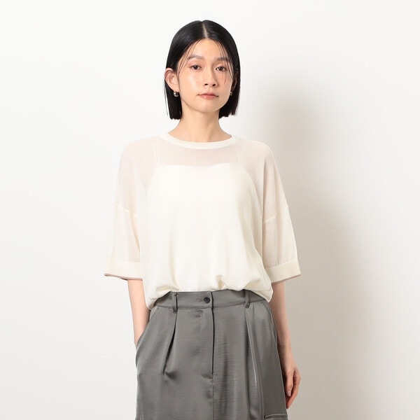配色のラインがポイントのゆったりシルエットのシアーニットT。