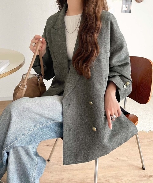 クラシカルエルフ サイドスリットオーバーサイズ ダブルジャケット L グレージュ