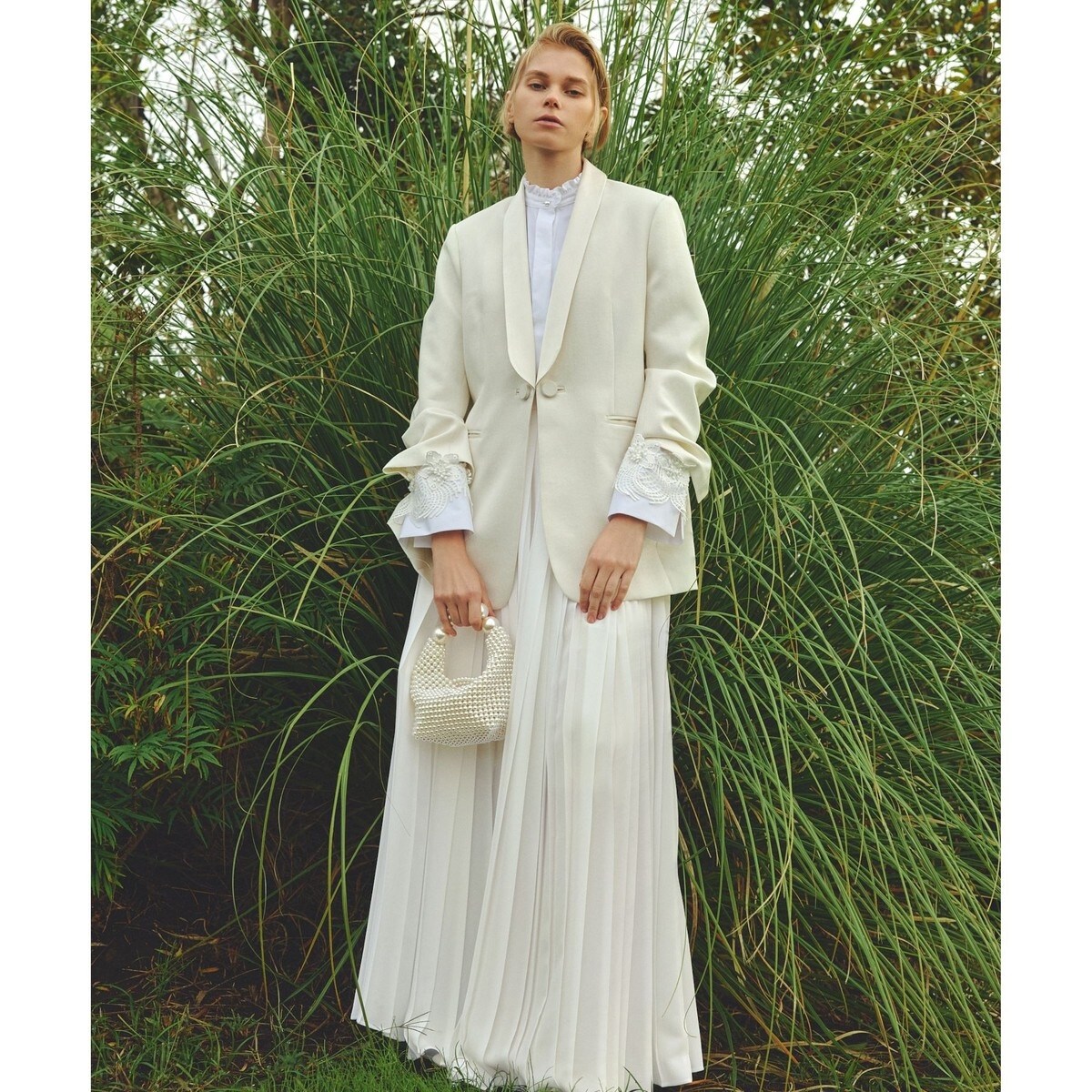 女性が美しく見える上品なシルエット、少しだけ広い肩で小顔効果と知的な印象へ誘います。