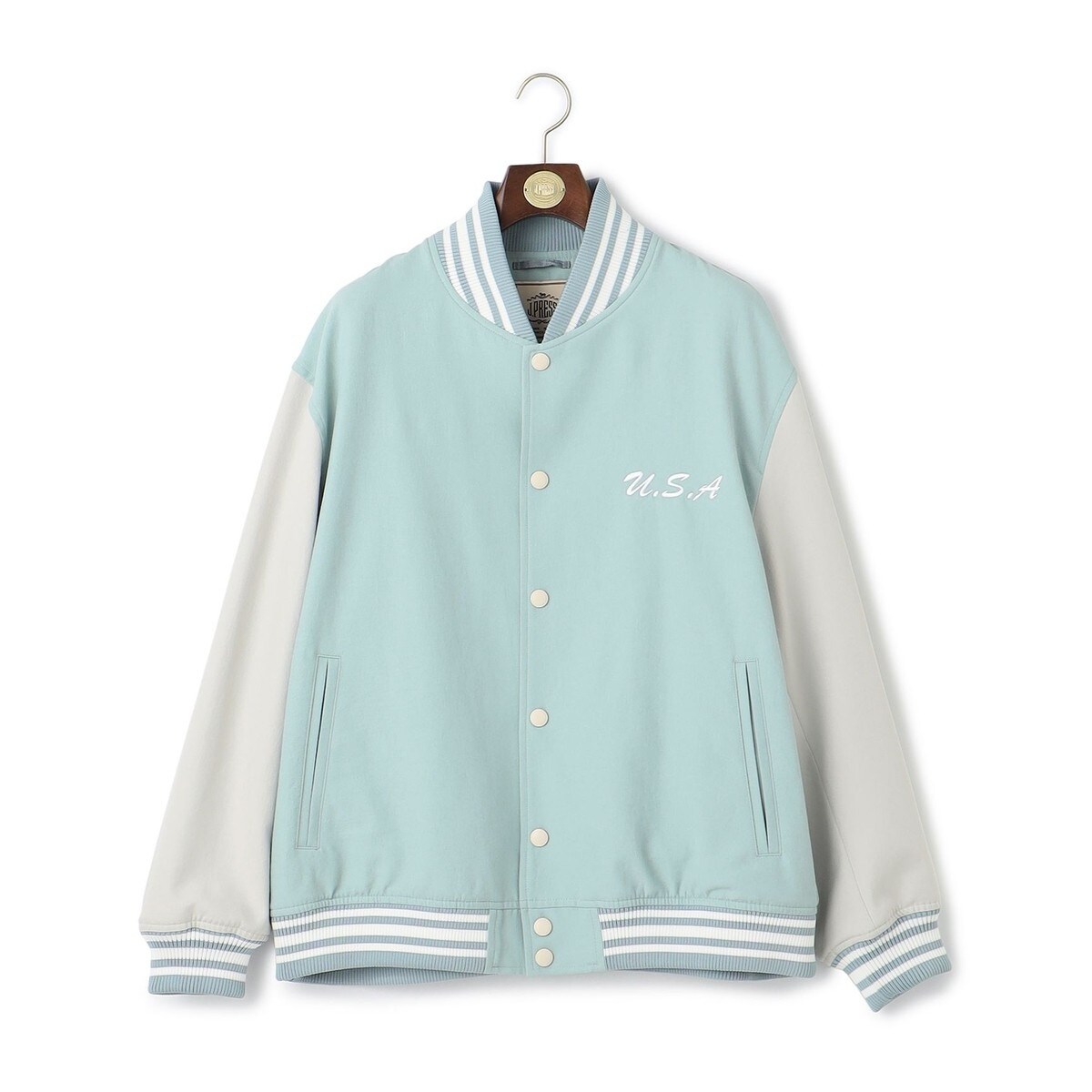 J.PRESS MENよりキングサイズ展開を開始致します。アメリカントラディショナルを感じるJ.PRESS の定番スタジアムスポーツジャンパー■素材春夏は軽快で着用がしやすいながらも、クラシックでしっかり感も感じていただける強撚ポリエステルツイル素材を採用しました。強撚糸のドライタッチな風合いと凹凸感を感じるワッシャー感が特徴です。■シルエット全体的にゆとりのあるボクシーなシルエット。より軽快に羽織れる着丈 。■仕様総裏仕立て。■コーディネートきれいめパンツから、カジュアルなパンツまで幅広く合わせやすいアウターです。インナーにはシャツやハイゲージニットなど、崩し過ぎないスタイリングがバランス◎■デザイナーコメント胸のサガラ刺?も大きなデザインポイント。過去のアーカイブを紐解いて筆記体の軽快な印象のロゴを復刻しました。また背中には厚く重ねたラバープリントロゴも採用しました。