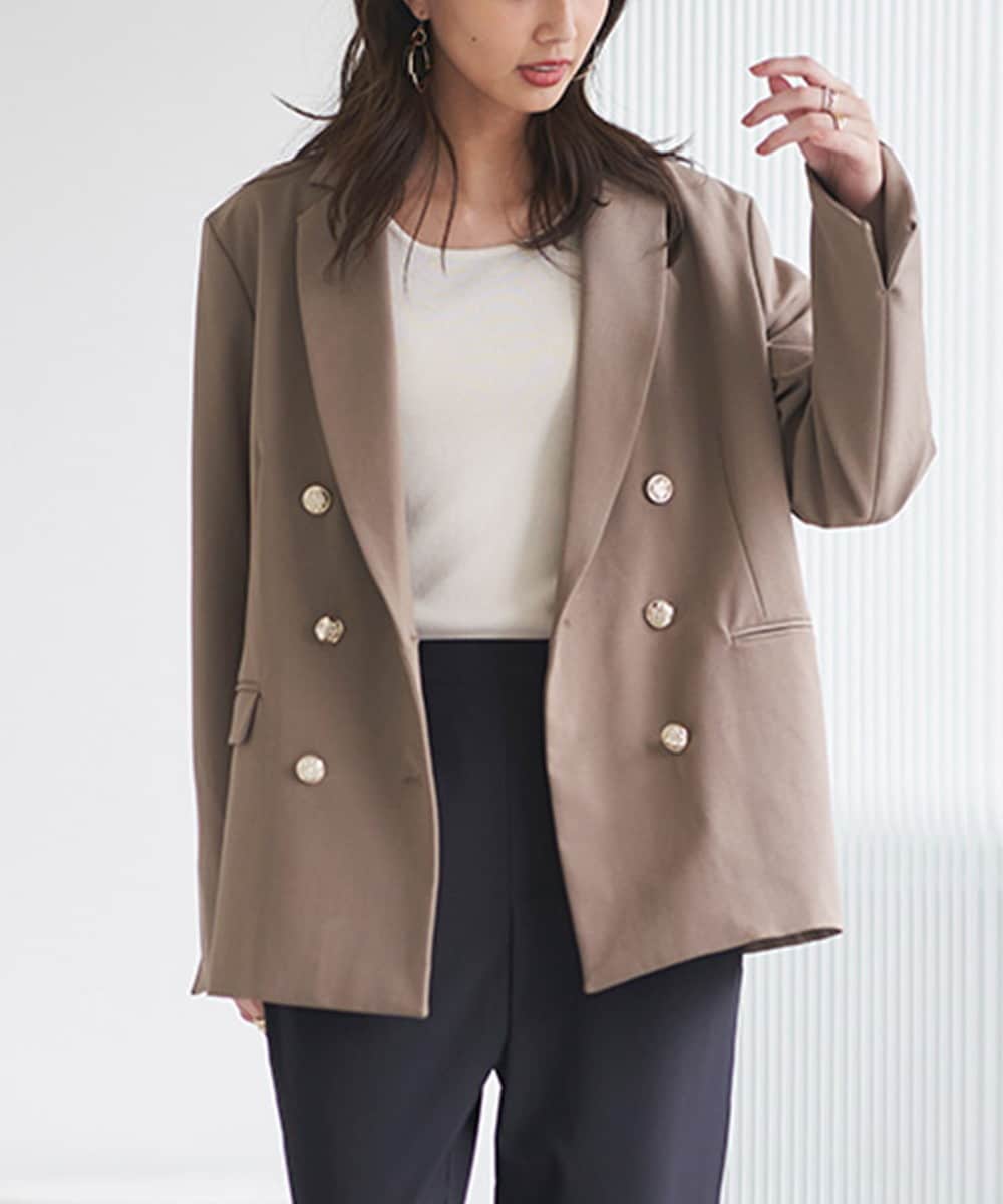 秋口からさっと羽織れるテーラードジャケットを程よいゆるシルエットとダブルブレストでマニッシュにアレンジ。