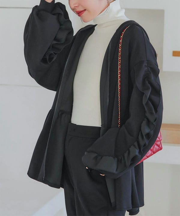 ★新品タグ付き★ノーカラーブラックぺプラムジャケット ライトアウター